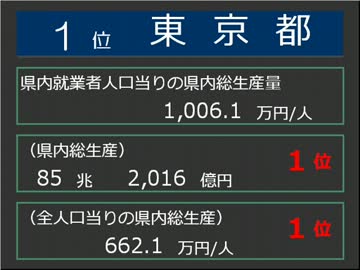 平成21年度県内総生産ランキング【県内就業者1人当り】