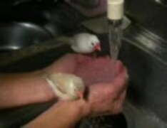 【文鳥】文太とプリンの水浴び合戦