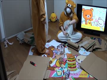 【ふぅきゃんとこなた】ダンボールでリラックマの椅子作ってみた【2】
