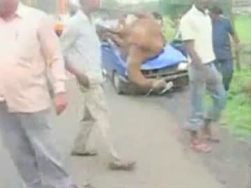 クルマと衝突したラクダが何事もなかったように立ち去る