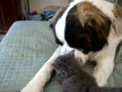 セントバーナードが大好きな子ネコ