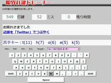限界打鍵トレーナー 549打鍵 52ミス