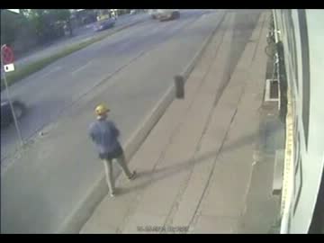 走行車両から外れたタイヤが歩行者を襲うが間一髪それた