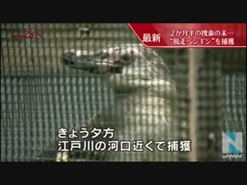 脱走ペンギン、江戸川で捕獲