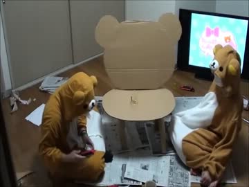 【ふぅきゃんとこなた】ダンボールでリラックマの椅子作ってみた【4】