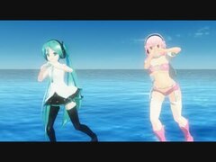 【MMD】ミクさんとそに子さんにハッピーシンセサイザを踊ってもらった