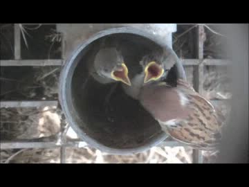 スズメの子(給餌の様子)