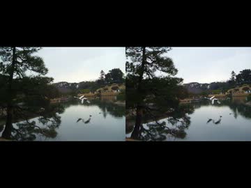 【立体動画】正月の後楽園で鶴を撮ってみた【バイノーラル?】