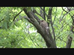木の上で雨宿りするムクドリの幼鳥