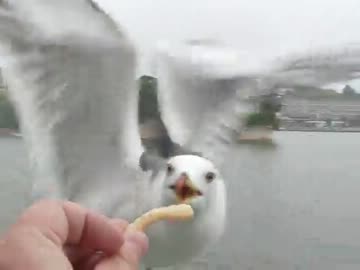 【ハイスピード】カモメにかっぱえびせんを与える【撮影】