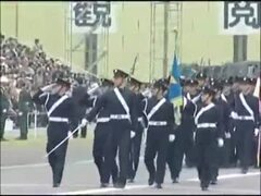 強盛大国総進軍歌で行進する自衛隊。