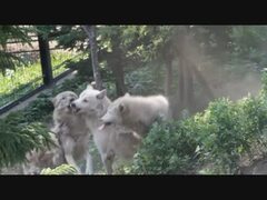 旭山オオカミ マース母さんにまとわりつく子供たち