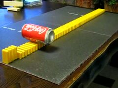 ドミノ倒しの上に缶を置くと・・・