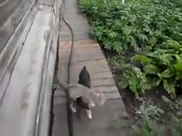 犬さんに担がれる猫さん
