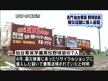 仙台育英学園高校野球部7人 震災被害の店に侵入「盗み目的で入った」