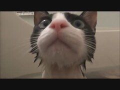 #猫 がお風呂に入りたがってたので入れたったwww