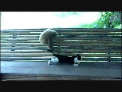 テナガザルがぬこをからかって遊んでます。