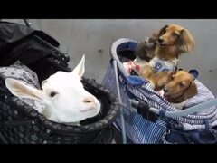 どうしてもミニヤギが欲しくておねだりをする犬