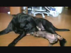 ミニチュア・カニンヘン・ダックスと黒ラブ