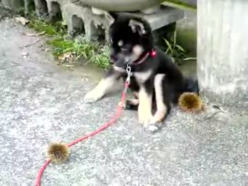 黒柴フータと毬栗(0歳)