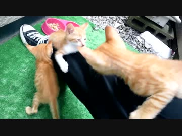 足をバトルフィールドにして遊ぶ子猫たち。
