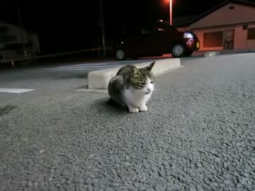 ガサガサ音に反応して寄って来た野良猫