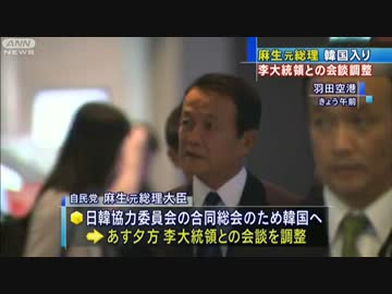 麻生元総理が李大統領と会談へ 韓国に向け出発