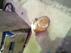 猫つかみしたら死んだふりする野良猫