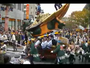 唐津くんち 2012.11.04 アルピノ前から(三番曳山・亀と浦島太郎).wmv