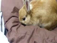布団をホリホリしたいうさぎ