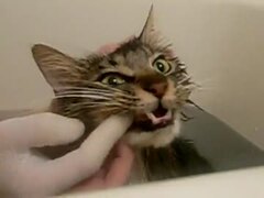 きら_風呂猫の初めての指歯ブラシ☆キレイキレイしましょうね♪