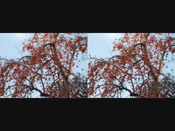 【立体動画・平行法】野鳥と渋柿・前【バイノーラル?】