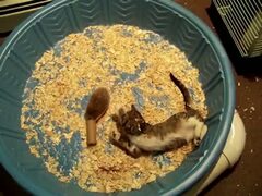 子猫 VS ハリネズミ @タライ