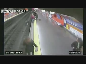 【海外の地下鉄】 線路に落ちてしまった男性を決死の救出