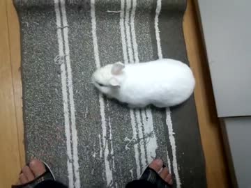 うさぎが足に匂い付けてくる