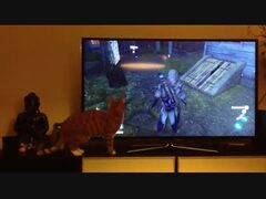 テレビゲームに興味を示す猫