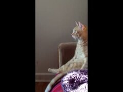 テレビを見るのに夢中で猫であることを忘れかけている猫
