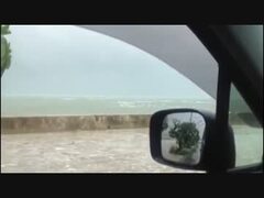 台風の中出かけてきた