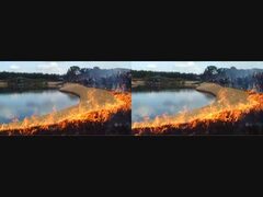 【立体動画・平行法】岡山後楽園の芝焼き【バイノーラル?】