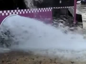 車内から水が溢れ出すバス