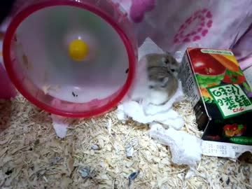 ハムスターがキッチンペーパーをほぐしているのを見守るだけ