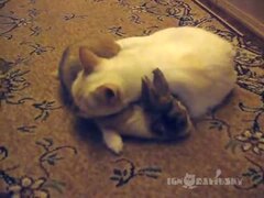 ウサギさんを枕にする猫さんがかわいいと話題に