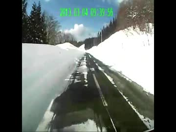雪道を走る地吹雪と晴天.wmv