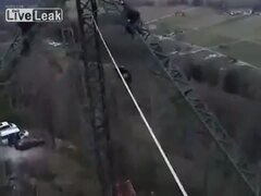 【ロシア】 高所での綱渡りに失敗する少年