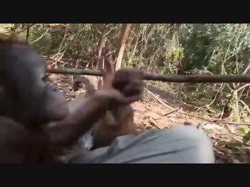 座っていると寄ってくる赤ちゃんオラウータン