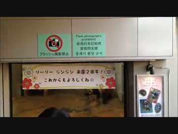 上野動物園のパンダ 笹を食べるリーリー