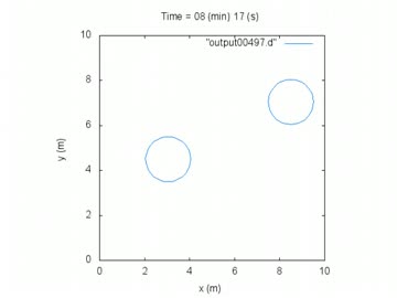 gnuplotで2球の衝突