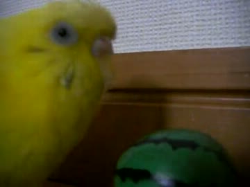 まゆーげインコとスイカ【至近距離編】