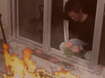 火炎瓶を投げ込まれて激怒するおじさん.med