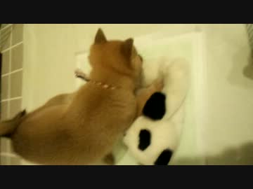 豆柴の子犬VSパンダ
